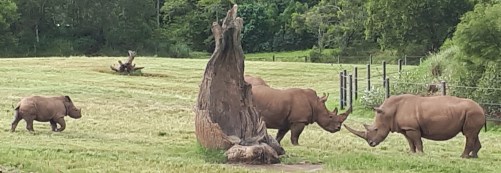 We walked around Bindi’s Isalnd and saw lemurs. Further on we ended up in Africa, a savannah where giraffes, rhinos and zebras can roam free. The meerkats are also in Africa, and seeing them reminded ourselves of our meerkat experience organized by our friend Michelle at Melbourne Zoo. While in Africa, we had a quick lunch of coffee, chips and ice-cream–not particularly healthy, but we enjoyed it.