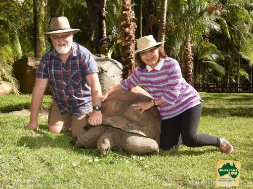 Ian & Katie with Jarvis the Giant Aldabran Tortoise