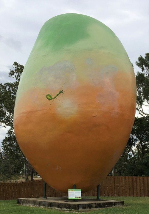 We both had a good night sleep with a cool breeze flowing through Matilda. After breakfast on Friday, John and Joy took us in their 200 Series Landcruiser with Dexter in the back for a tour of Bowen. Bowen has industry–mining, fishing, salt production and agriculture. Bowen is also famous for being the birthplace of the Kensington Pride Mango. Bowen’s fresh produce includes capsicums, eggplants, zucchinis, chillies, pumpkins, and tomatoes. The Big Mango was erected in 2002 to commemorate the connection the area has with the fruit.