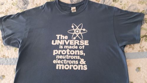 Katie bought Ian a T-shirt with a Big History theme, while Ian bought Katie one that depicts Star Wars Meets Abbey Road. Ian taught a Big History course to the University of the Third Age in Maitland last year—this is a short history of everything since the Big Bang!