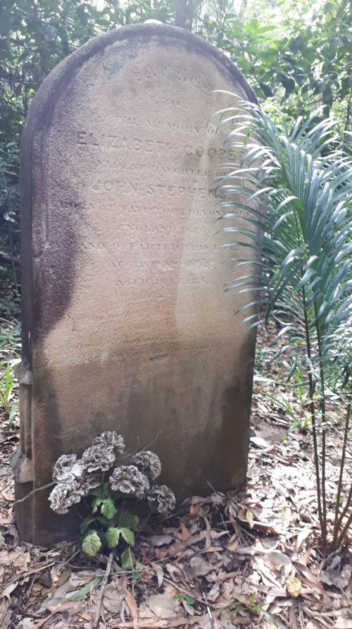 Ian then headed to the Cooktown cemetery with Dexter on the advice of several of our friends. Ian looked for the oldest grave, the youngest grave, and the most interesting grave. The oldest grave belonged to a lady called Elizabeth Cooper. She and two other people drowned off St Patrick’s Point on 16 August 1874, but only Elizabeth’s grave is marked. The cutter Platypus, with eleven people aboard, capsized during a reef trip. There was later controversy about whether enough was done by the other eight people to save those who drowned. The site of the grave is also a mystery because the grave is well away from the main part of the cemetery. Maybe, this was the main part of the cemetery in those days.