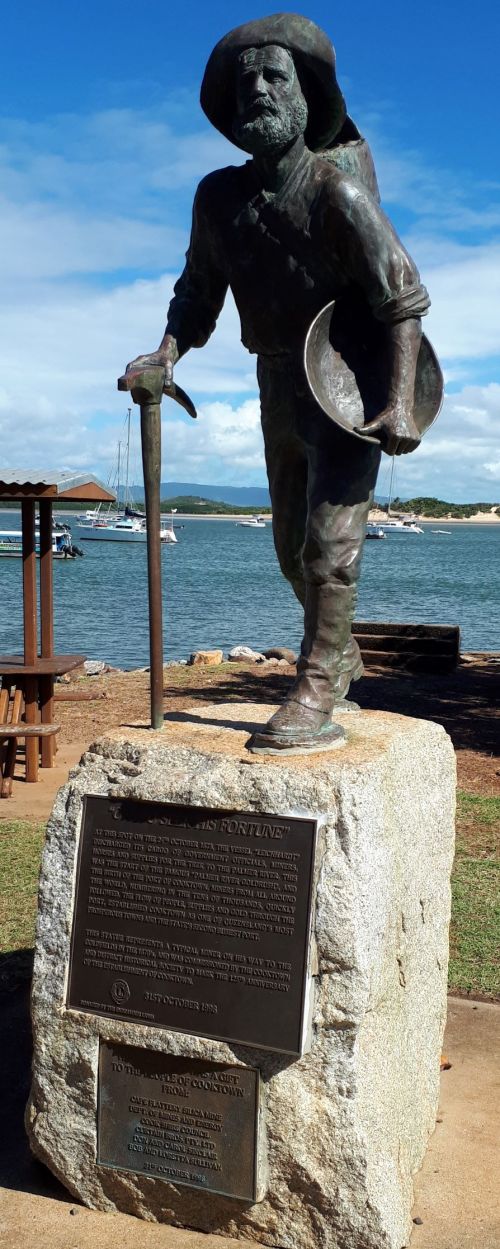 Statue of a gold miner to commemorate Cooktown’s 125th anniversary. Cooktown was established as a substantial port in 1873, 103 years after Cook’s landing, to support the Palmer River goldfield.Memorial to Captain James CookThe landing place of the HMB Endeavour was well marked