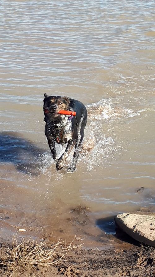In the afternoon, Dexter went for another swim, and this time Katie came down to the lake for a walk.