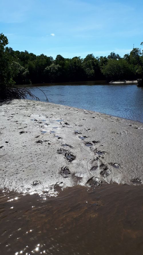 Looking for crocodiles among the mud and the mangrovesPossible crocodile tracks, or AquamanA peaceful life way upstreamOops