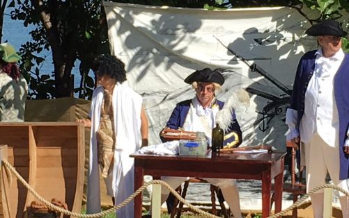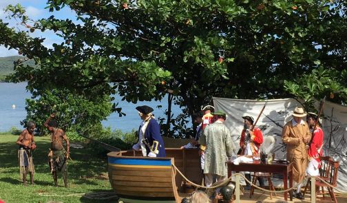 We arrived at Cooktown and were surprised to find that all caravan parks were full because we arrived just before the weekend of the annual Cooktown Discovery Festival held during 14 to 16 June. This year marks the 40th staging of the event that highlights Cooktown’s unique environment, heritage and culture, and commemorates James Cook’s landing and 48 day stay in 1770. We could not believe our luck, having also arrived a few weeks earlier in the town of 1770 in time for a similar event—the 1770 Festival. A re-enactment of Cook’s time here was scheduled for Sunday morning. When we let Grant and Jacqui know what happened, Jacqui recommended that we stay for that as she had seen it and was impressed.