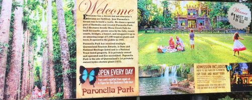 We were also given a ticket for us to have free admission to Paronella Park for the next two years, and one night’s free camping in the next 12 months. We immediately had thoughts of dropping in next year if we head north for the 250th anniversary of Captain Cook’s landings in Queensland. We would definitely do the tour of the hydro-electric plant if we come back.