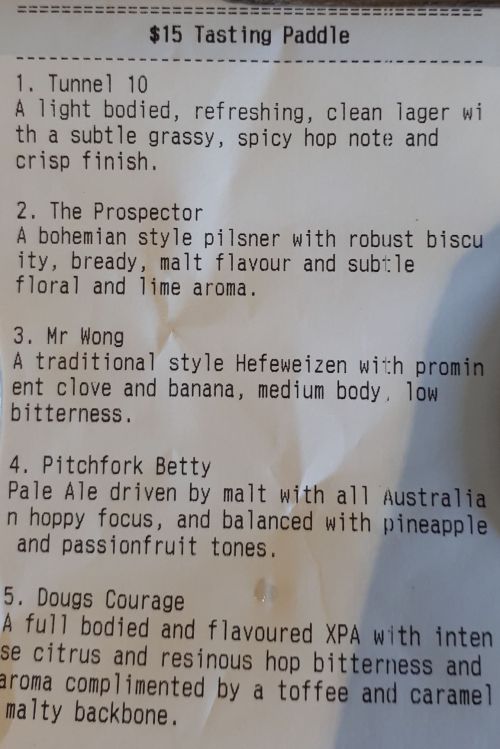 Ian’s research had an interesting result. As usual, the tasting paddle was organised to taste the beers in an increasing order of hoppiness (very similar to happiness for a lover of pale ale), with the 5th beer being the XPA, which is called Doug’s Courage. Ian was surprised that the taste of the XPA from the tap in the paddle was nothing like the same XPA he bought in cans the previous day.