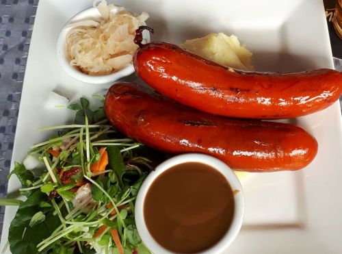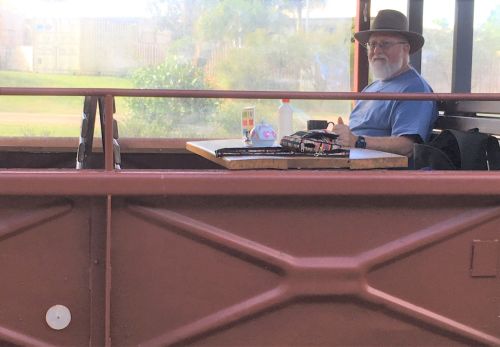 For lunch, Ian had kransky, sauerkraut, mash and salad, which was a bit unusual, but OK. There were two beers on tap from the Red Dragon Brewery in Cairns. The Pale Ale was not a pale ale at all—it had no detectable hops. The Mena Premium Lager was better, even though Ian generally finds lager rather bland.