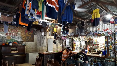 Our next stop was the iconic Lion’s Den Hotel, which you would pass by if you drove to Cooktown from Mossman via Cape Tribulation along the Bloomfield Road. It was a bit early for a beer, so we had some tea and coffee, and we ate some goodies we bought from the Cooktown Bakery as the hotel did not have any morning tea food. The Hotel has an adjacent, riverside camping ground, which was lovely and green when we were there. It is certainly worth considering for an overnight stop next time we are up this way.