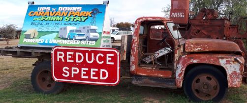 Ian put his mind onto options for accommodation the next evening at Roma. The farmstay mentioned by the Moke owners was about 10 km out of the way, but another farmstay called Ups N Downs was on the Carnarvon Developmental Road 5 km north of Roma. A quick phone call to Ups N Downs received a positive response, so that was sorted.