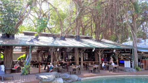 Ramada Resort Port DouglasRamada’s poolside restaurant with trees growing through the roofThe pool