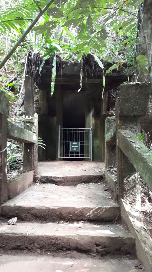 Ian also found the Chinese Shrine. Over 300 Chinese people were buried in this area between 1873 and 1920. The shrine was built in 1887. Chinese emigrants feared they might die, never to return to the land of their ancestors. Most of those initially buried here were later exhumed and returned to China. The three characters on the shrine, written in ancient script, read Tjin Ju Tsai, which means, Respect the dead as if they are present.