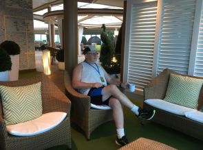 Katie hopped back on the bus and rode most of the circuit back to the cruise terminal. Ian walked back to the mall to reconsider the Casio watch, which he eventually bought for $129. Ian then walked back to the Waterfront across Skywalk and tried some One Mile Brewery Red Ale and IPA as part of his research into craft beers.