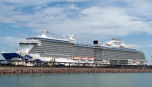 We docked at what appears to be a temporary cruise terminal. As we now had Internet access via the Australian mobile phone network, we caught up with phone messages and email. We received an email from Scott and Sally Petrick advising us that they had set off on their trip to the Kimberleys a couple of days ago. This was the only time that was convenient for Sally to take time off work. We were very disappointed to miss them, but this freed up our day a little. We will definitely catch up with them in July.