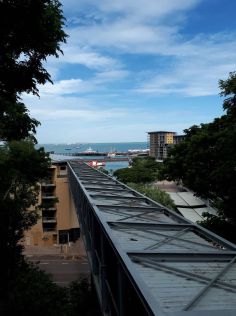 The hub of Darwin is the Smith Street Mall. After looking at hundreds of watches over the past year on the Sun Princess, in Hong Kong, in Australia and on the Majestic Princess, Ian finally found the watch he was looking for—a solar powered Casio G-Shock digital watch that is water resistant to 100 m. However, our tummies were telling us it is lunch time, so we found Shennanigans—an Irish pub of the same name as the one in Maitland. We had a huge lunch—Katie had Thai beef salad, and Ian had fish ‘n’ chips, which he usually did on Friday lunches when working. The Guinness (Ian) and lemon, lime and bitters (Katie) helped to rehydrate us.